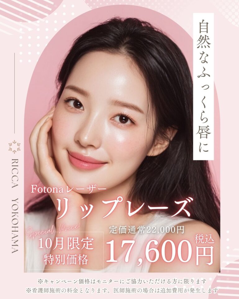【美容皮膚科】10月限定プランのお知らせ(リップレーズ・白玉点滴・ペップビュープラス)