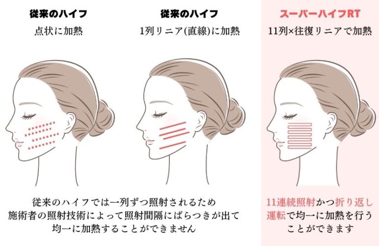 | 従来のハイフ(1.0) | 従来のハイフ(2.0) | スーパーハイフRT(3.0) | |